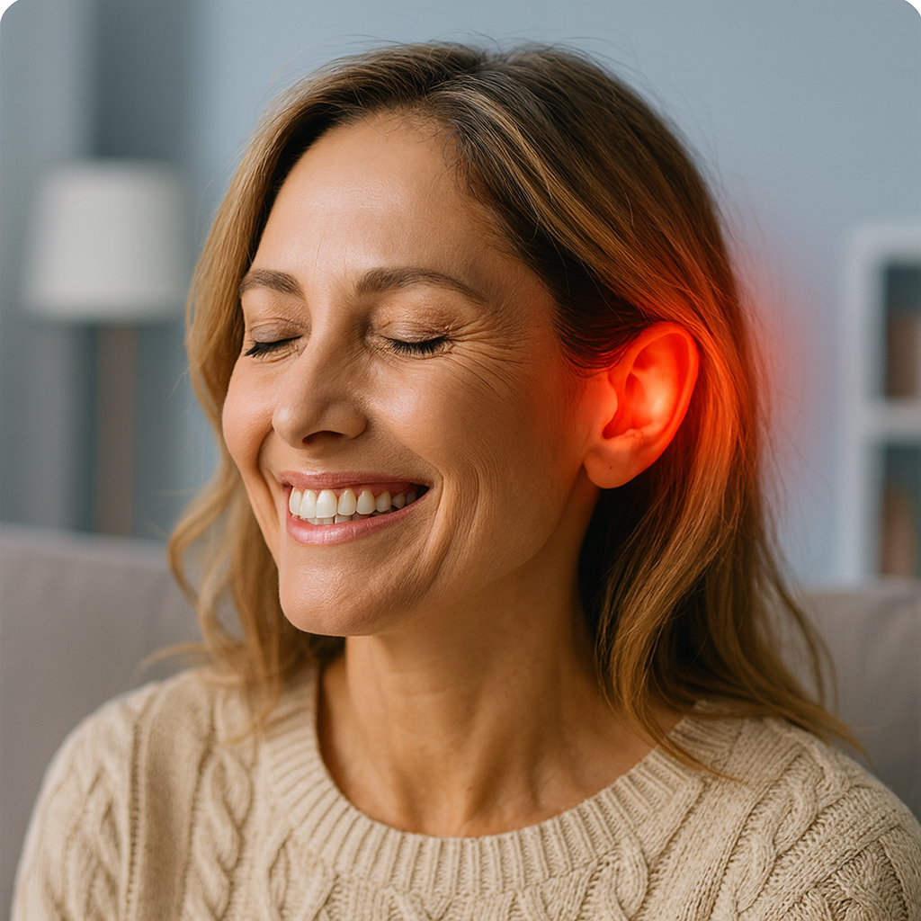 In a 20-day clinical evaluation using 650 nm red light therapy, participants reported a significant reduction in ear ringing and noise sensitivity.